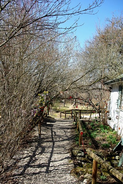 Ruhe. Hummeln, Vogelgesang. Stille. Ein Gelände wie eine Insel. Betritt sie und lerne andere Maßstäbe kennen, als dort gelten, wo du her kamst. Der Meister ist nur ein paar Schritte weit. Er segnet Dich unter Wellblech und Alufolie. Sein treuer Diener ist bereits voraus gegangen. An einen Ort, der dieser Insel gleichen mag.