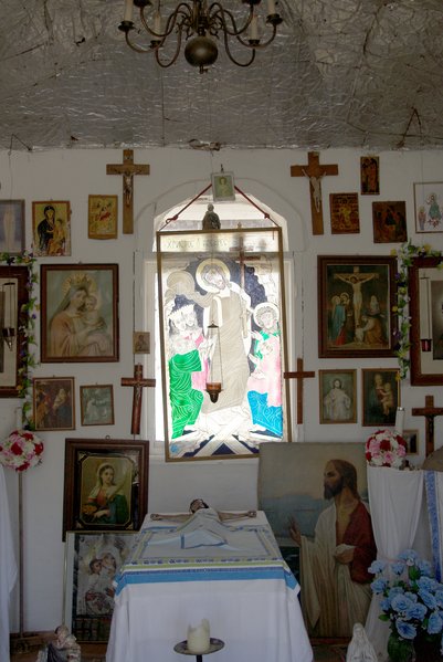 Singe ein Lied für die Toten und die Lebenden. Zünde eine Kerze an und vergiss Deine Angst. Riech an den Kräutern und gieße das Blumenbeet. Sieh Dir an, wer vor Dir die Wiese beschritt. Dies ist ein Ort des leisen Widerstands, der Handwerkskunst ohne Regeln. Nicht jeder kann ein Eremit sein, aber jeder kann lernen, die Geschwindigkeit zu vergessen und auf die Suche zu gehen. Schmerz kann grellbunt sein, Sorge naiv. Lass zurück, was Dich beugt. Komm mit und grüße die Ewigkeit. Timofei Wassiljewitsch Prochorow begann 1952 zu bauen, was heute Museum und Gedenkstätte ist. Das Material fand sich, der Architekt benötigte keine Genehmigung zur Verwirklichung seiner Pläne. Menschlichkeit war wichtiger als olympische Gelände. Natacha verschied und hinterließ ein symbolisches Grab. Timofei verließ den Planeten 2004.